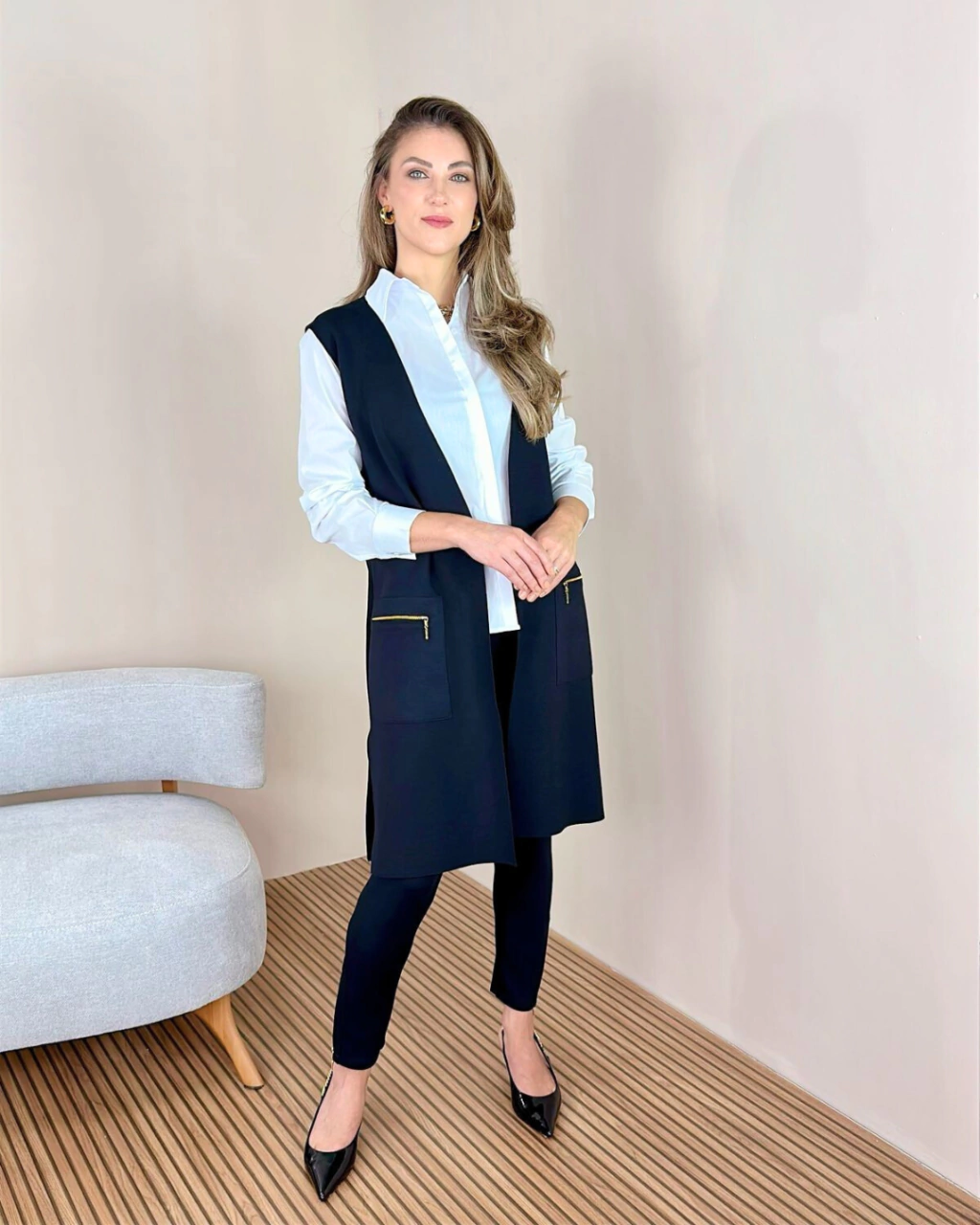 • O zíper na barra é um detalhe que não só agrega um toque moderno, mas também permite versatilidade nas combinações, tornando-a perfeita para ocasiões casuais ou sofisticadas.